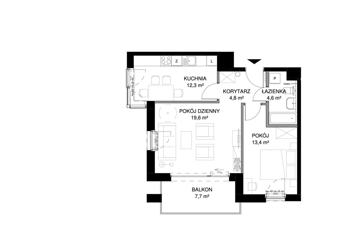 54,40 starannie zaprojektowanej przestrzeni, która stanowi idealną bazę do stworzenia wnętrza klasy premium - dokładnie takiego, jakiego oczekuje wymagający właściciel.