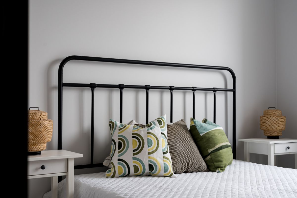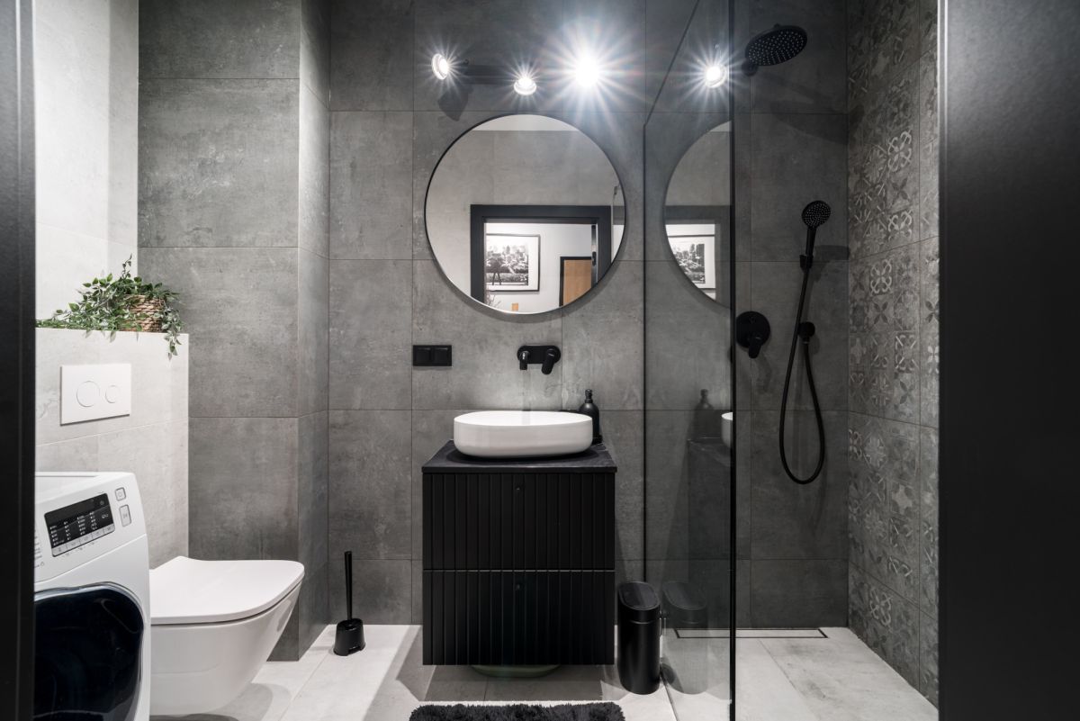 Sypialnia została zaprojektowana z myślą o komforcie - znajdziemy tu wygodne łóżko o szerokości 160 cm, szafki nocne oraz komodę. Łazienka z prysznicem i pralką jest praktyczna, a jednocześnie utrzymana w spójnym, eleganckim stylu.