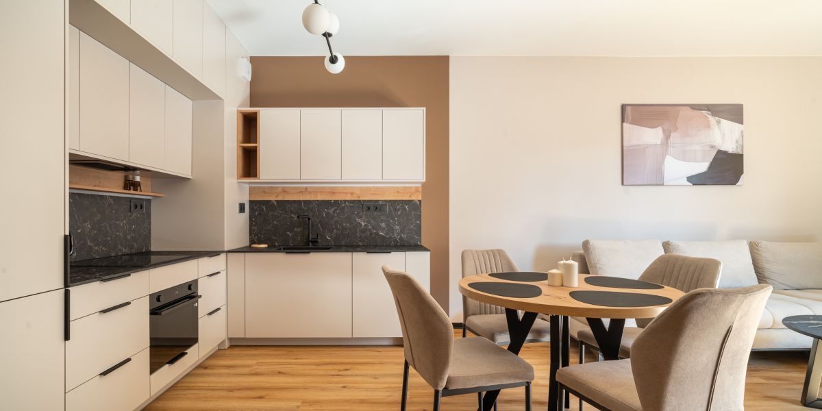 Urządzony w ciepłych kolorach, w pełni umeblowany.